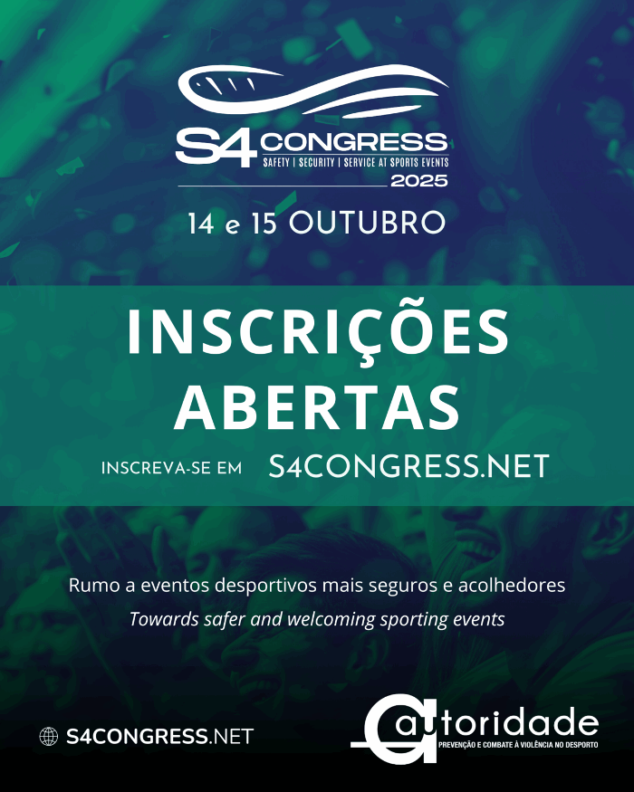 O S4Congress | Safety, Security and Service at Sports Events é um espaço privilegiado de encontro, reflexão e partilha de boas práticas nacionais e internacionais em espetáculos desportivos e contará com representantes de instituições como o Conselho da Europa, Nações Unidas, FIFA e UEFA.